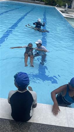 Within five days 39 students completed our water safety program and learned to swim and even help other having trouble in water