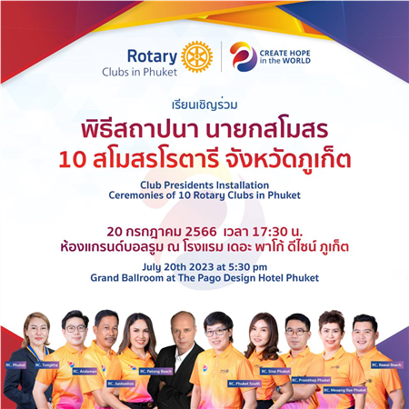 As in previous years, the 10 Rotary Clubs in Phuket decided to hold a big ceremony to celebrate the installation of the incoming board. the installation party took place on July 12, 2024